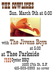 Erika of ebstudios created these mighty fine posters just for us. She's a fan of The Cowlicks, and we're a fan of her!